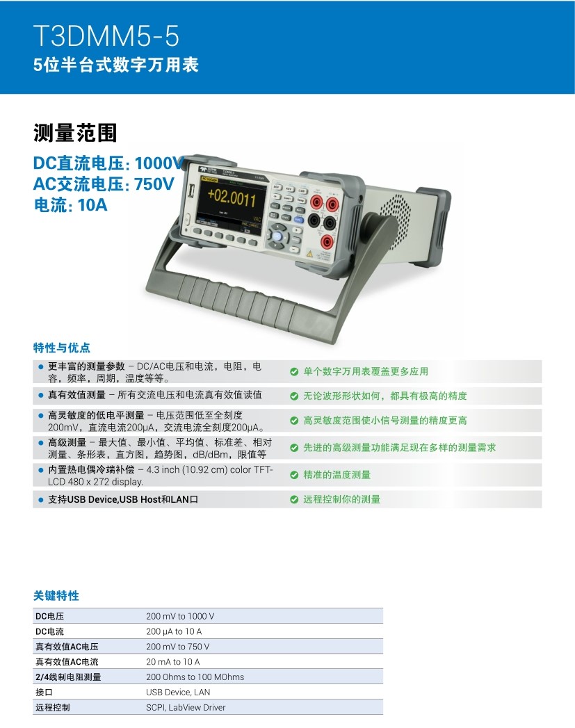 力科T3DMM5-5五位半臺式數字萬用表1000V.10A