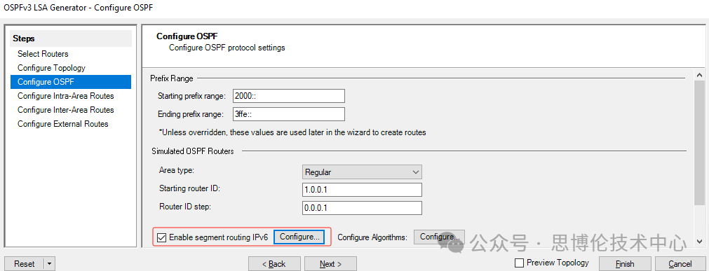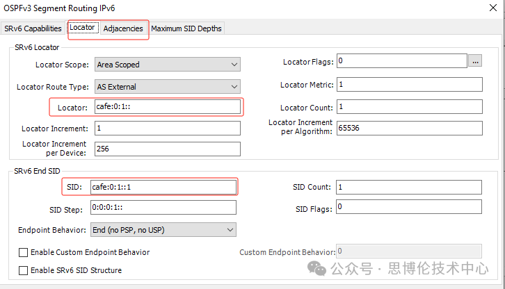 --在生成OSPFv3 LSA 的配置向?qū)Р襟E,使能SRv6,配置Locator,End-SID及Adjacencies END.X SID等