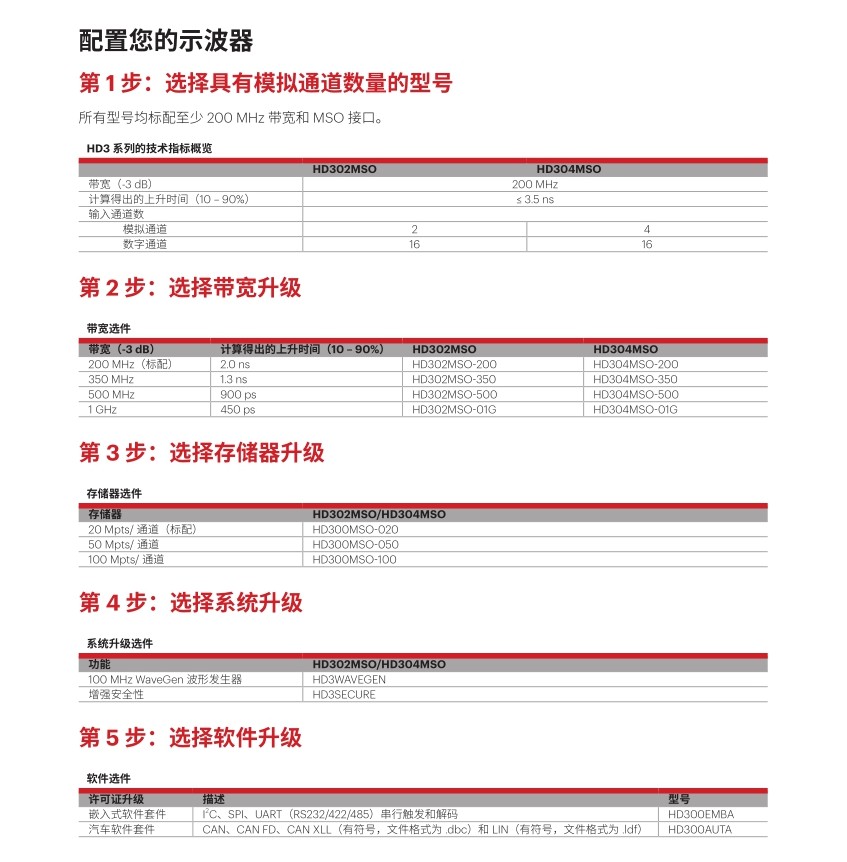 HD3 系列采用完全定制的核心器件,專門針對示波器測量進行了優化。研發團隊投入大量精力設計出了 一款全新的 14-bit ADC、一款全新的 ASIC,還有其他配套元器件和一種全新的信號傳輸架構。由于是親 自設計的這些元器件,而不是使用現成的元器件,因此我們的硬件運行速度更快、效率更高,因為它們是專門針 對示波器設計的。 這種新架構還包括深存儲器,每個通道都配有專用的存儲芯片(100 Mpts)。這意味著通道之間不存在交織采樣。 即使您開啟了全部 4 個通道,也仍然可以在每個通道上獲得該示波器的最大存儲深度和最高采樣率。 我們采用的新型定制 ASIC(MegaZoom 5)使得 HD3 成為同類產品中唯一一款通過硬件實現區域觸發、串行解 碼和模板測試等功能的示波器。 最后,借助定制硬件,我們還能夠構建新的定制軟件,例如我們的故障獵人應用。您只需運行故障獵人,就能輕 松檢測信號中的各種毛刺或錯誤!