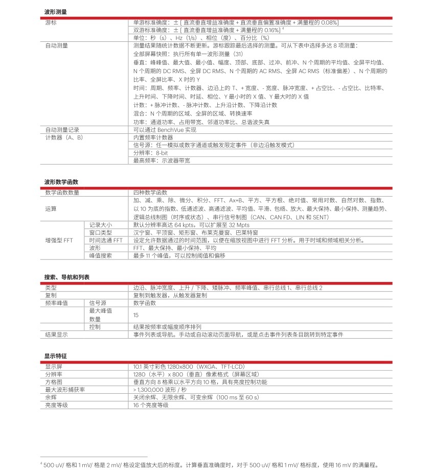 HD3 系列是新一代 InfiniVision 示波器。HD3 引入了我們原本在高速 UXR 系列示波器上所采用的 高性能技術,可以執行精準測量,并且外形也更小巧便攜。 HD3 采用了全新架構設計,與同檔儀器相比,能夠更準確地分析設計中的各種信號。定制的 14-bit ADC 和超低噪 聲前端更是為這一系列示波器帶來了超高的垂直分辨率。這些功能特性確保您能夠進行更準確的測量,從而真實 地洞察產品內部的信號情況。 您可以使用內置帶寬濾波器獲得高達 16-bit 的分辨率,準確度極大提升(提高了 5 倍)。需要使用 1 GHz 的完整 帶寬?即使是在完整帶寬 1 GHz 下,您依然能夠獲得超高的準確度,顯示標度可以放大到 500 uV/ 格。
