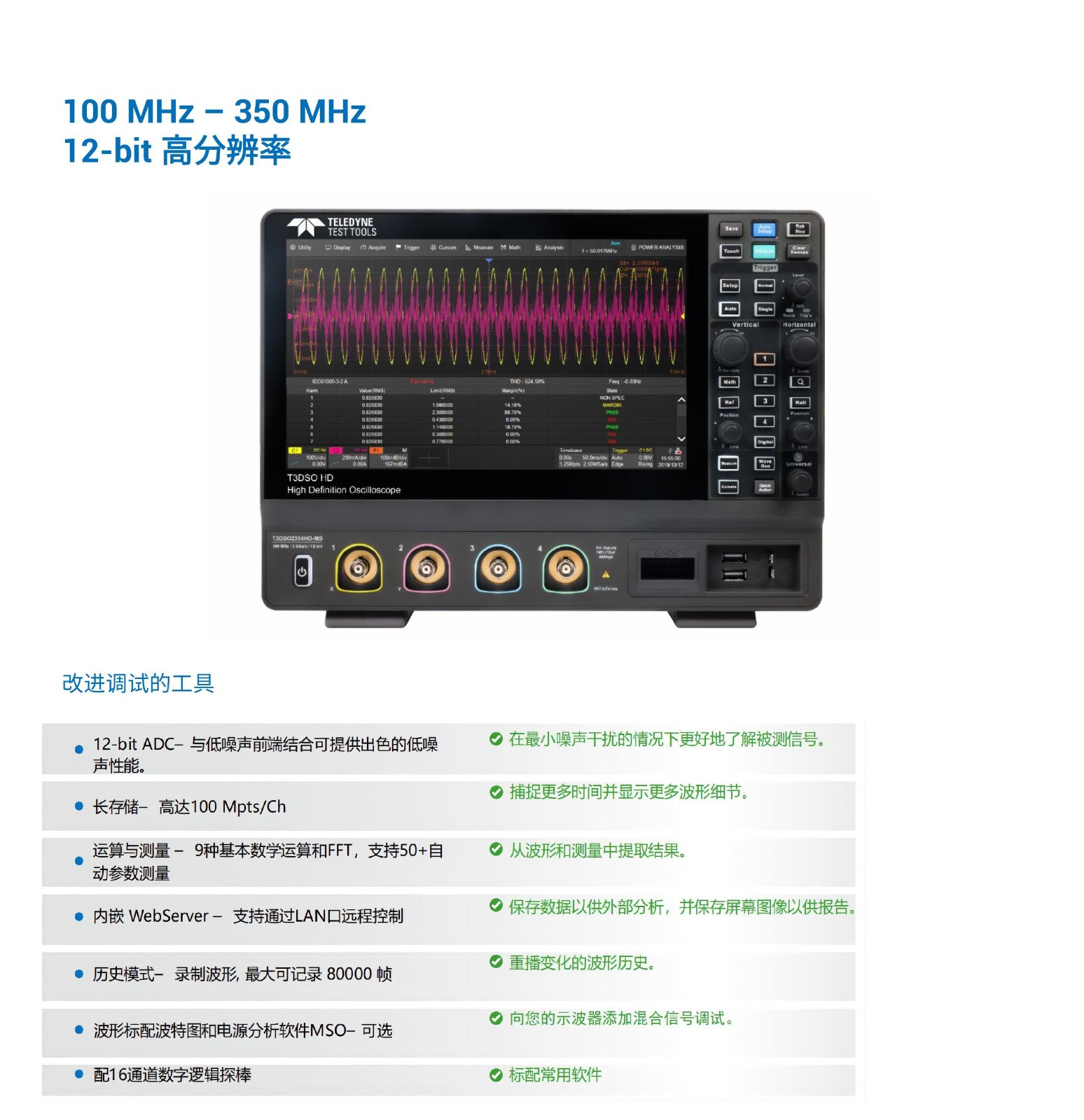 ·帶寬:100MHz、200MHz、350MHz