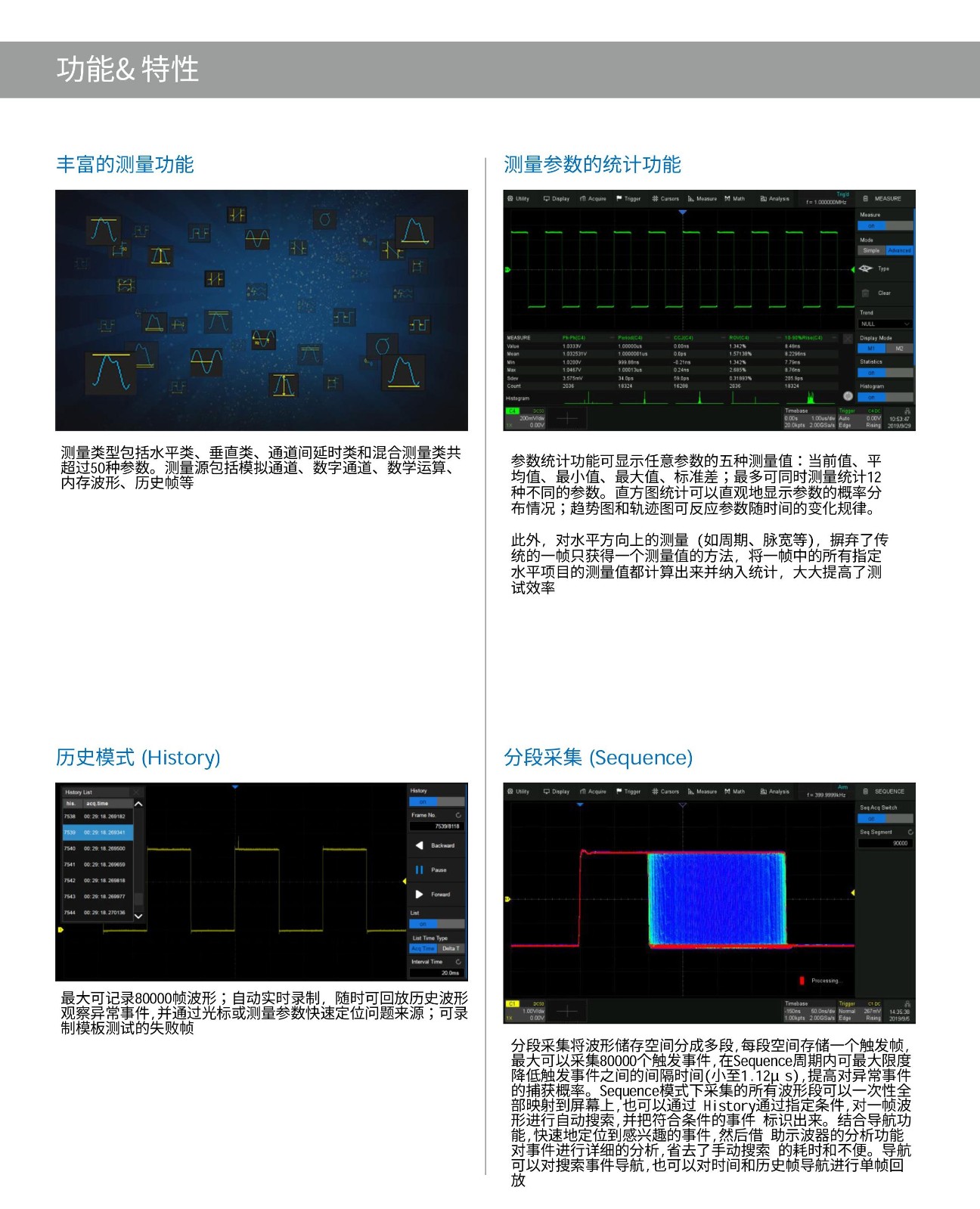 ·存儲深度:200Mpts for CH1 and CH3,100Mpts for CH1and CH2