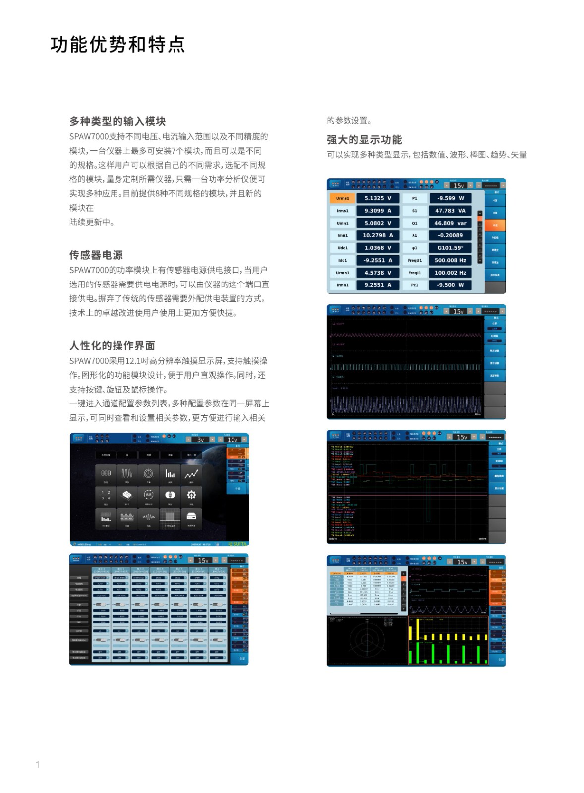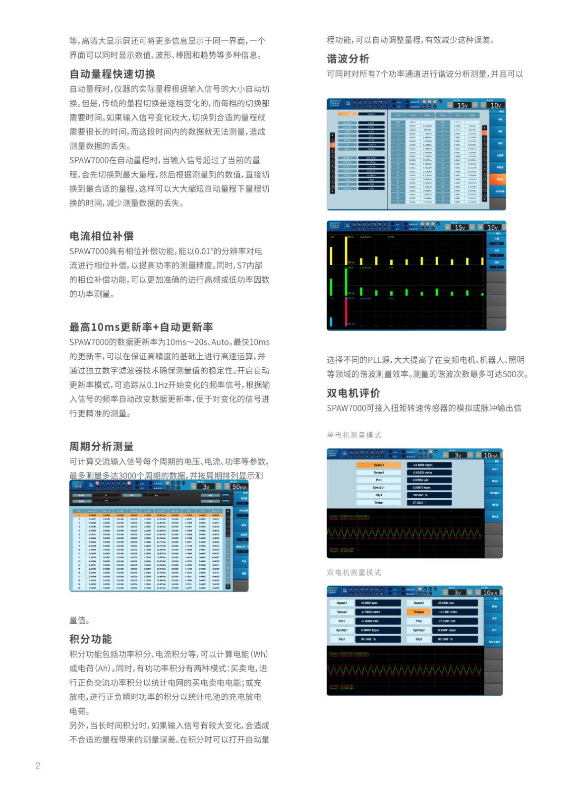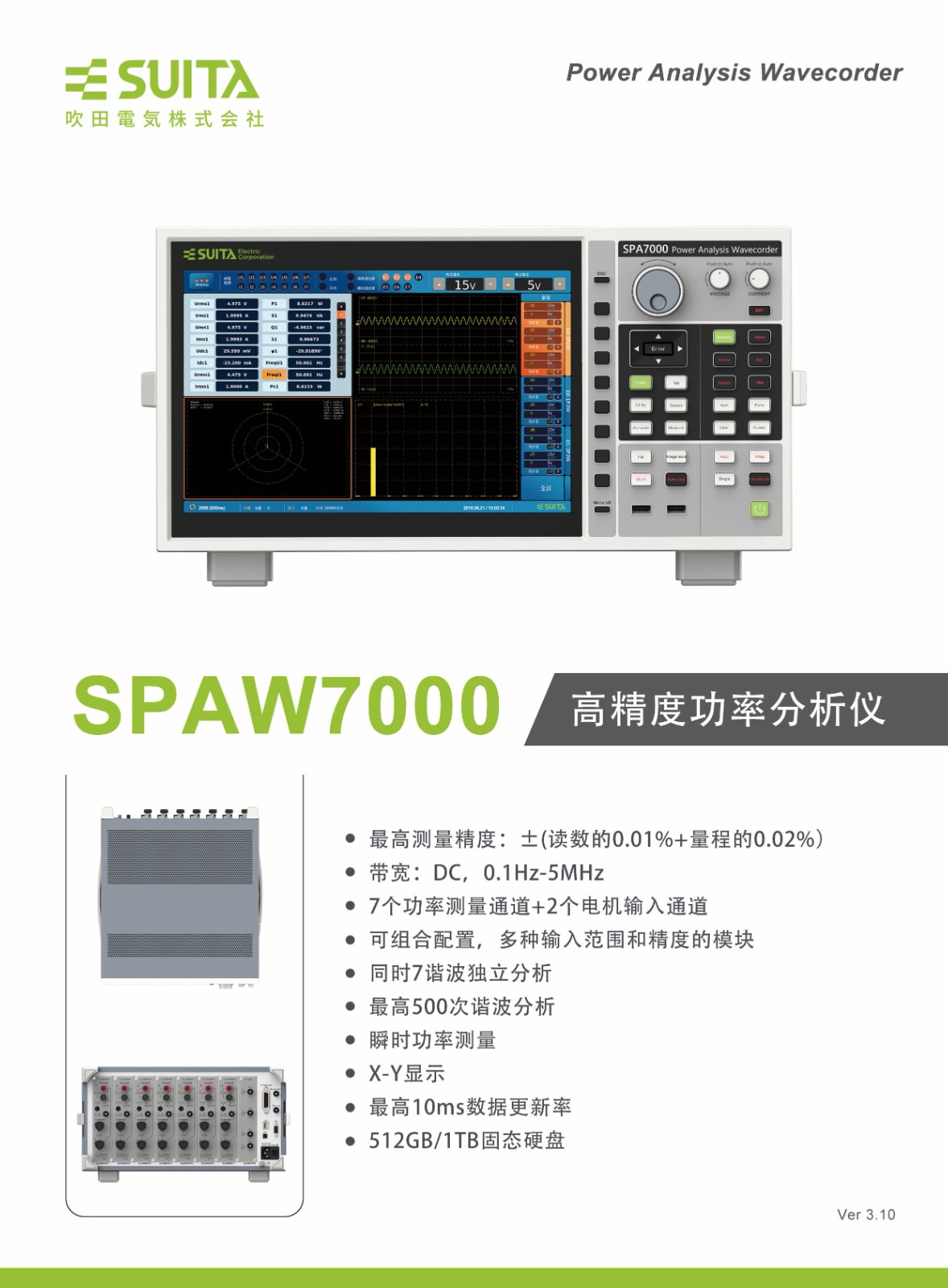 功率分析記錄儀SPAW7000高測量精度 (讀數(shù)0 01%+量程0 02%)最快10ms數(shù)據(jù)更新率低壓穿越測試7個功率通道+2個電機(jī)通道板卡支持自主插拔7路不同PLL源諧波同時分析500次諧波測量實(shí)時數(shù)據(jù)存儲