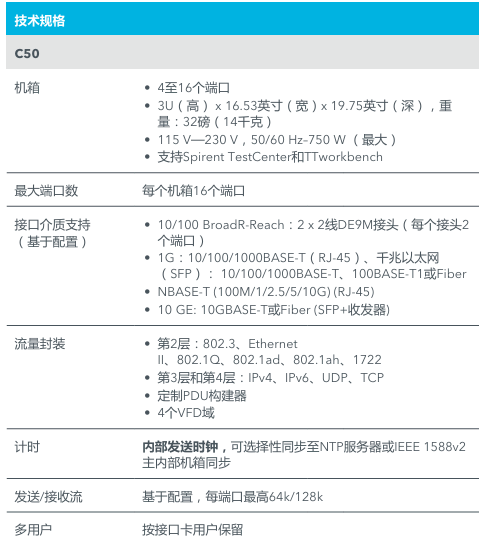 力,實現更智能的測試并優化其測試投資。思博倫汽車C50支持Spirent TestCenterTM