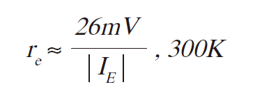 其中上下電壓由下標(biāo)u和l表示。它們的區(qū)別在于輸入和輸出差分電壓。放大器的上側(cè)和下側(cè)都會影響總增益,所以在Av的BJT增益前面x2。因為RE(R4254)非常接近BJT的動態(tài)發(fā)射極電阻re,所以更好的增益近似是在增益方程的分母中將RE增加2 x re,其中: