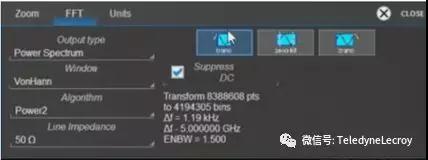 力科示波器都可以配備頻譜分析軟件選項,提供了與專用頻譜分析儀非常相似的用戶界面,簡化了FFT的設(shè)置,提高了測試的效率。